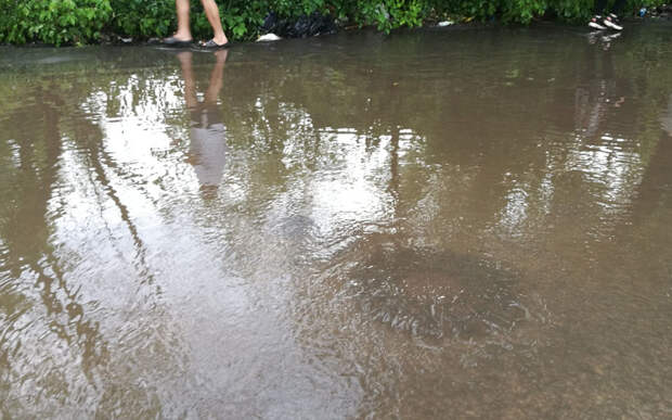 Так, проблемы возникли с ливневым коллектором возле «Глобуса»: вода била фонтаном.