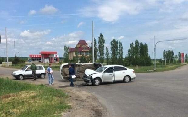 В результате столкновения Lada опрокинулась.