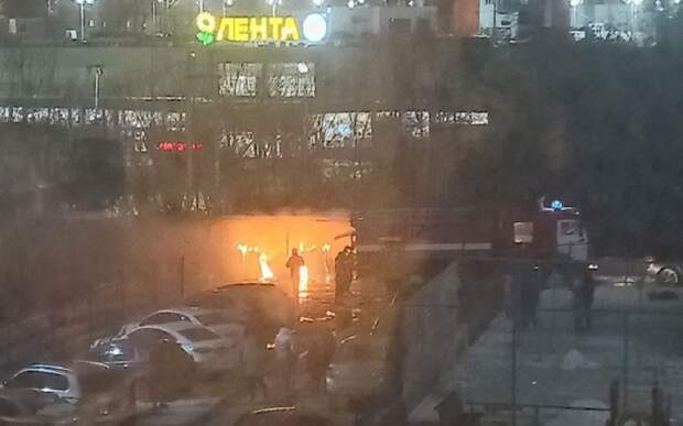Огонь вспыхнул на парковке у гипермаркета "Лента" на улице Тимуровцев. Комментаторы в соцсетях предположили, что причиной возгорания мог стать фейерверк, попавший в мусорные контейнеры.