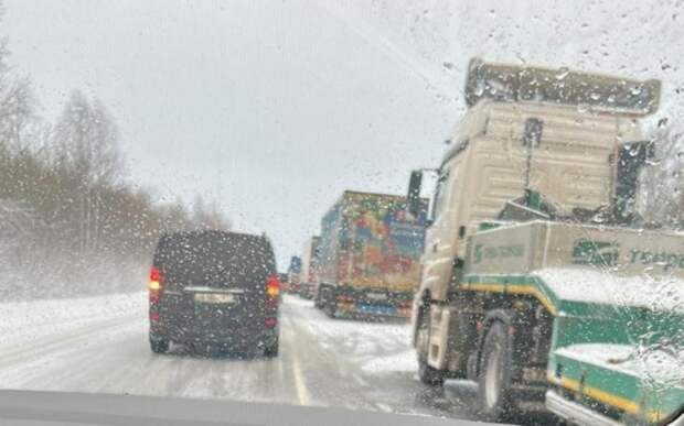 Авария собрала затор по всей трассе от Шацка до Путятино, при этом фуры не могут объехать место аварии или преодолеть подъём из-за состояние проезжей части.