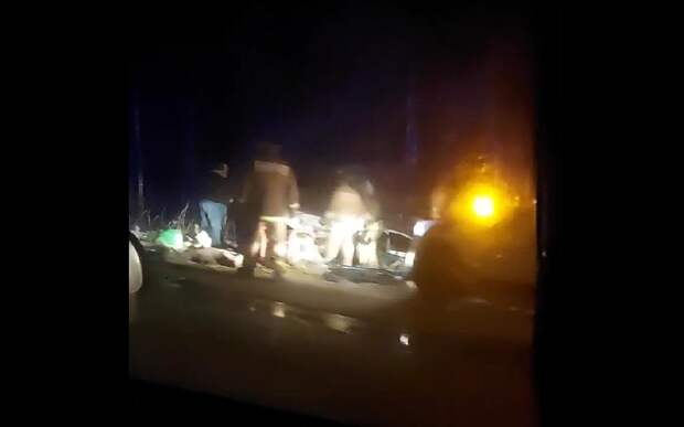 ДТП случилось вечером в пятницу, 2 декабря. Судя по кадрам, один из автомобилей улетел в кювет. На месте работали экстренные службы.