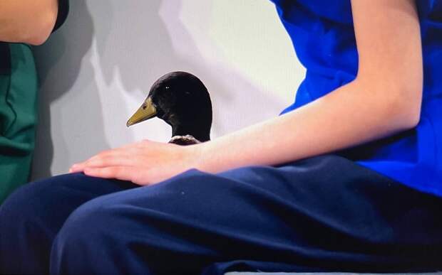 Утку зовут Даки. В эфир вышли кадры, на которых он демонстрирует свои таланты. Например, селезень катался с горки - с удовольствием забирался наверх и бесстрашно съезжал вниз.