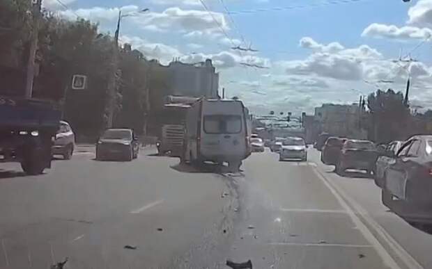 Судя по видео, водитель ГАЗель решился на опасный манёвр: на немаленькой скорость пошёл на обгон, а на пути встретился реанимобиль.