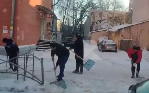 Местные жители вместе с коммунальщиками «усиленно чистят снег на тротуарах, пешеходных переходах и остановках».