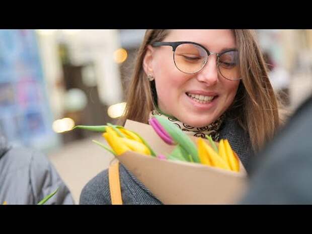 Сотрудники вышли на улицы города и вручили букеты тюльпанов. Девушки, девочки и женщины были приятно удивлены и поблагодарили мужчин за сюрприз.