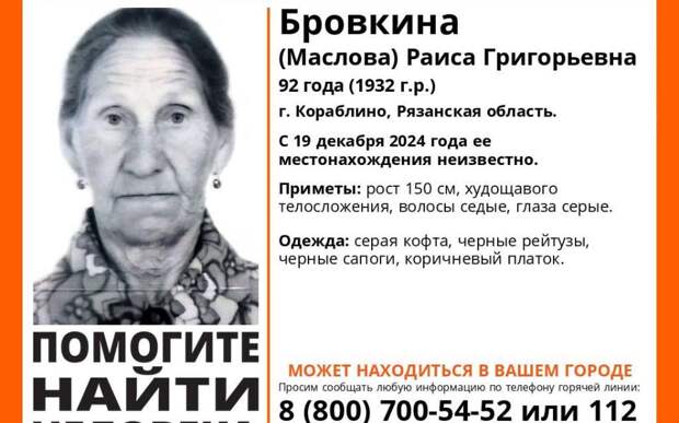 Женщине 92 лет. Она вышла из дома 19 декабря и не вернулась.