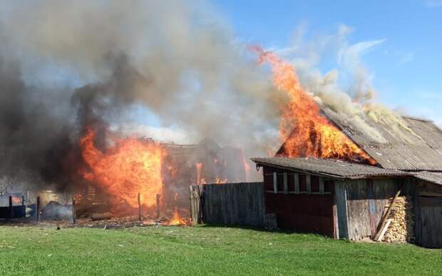 Огонь уничтожил дом и надворные постройки. Люди не пострадали. Причины пожара выясняются.