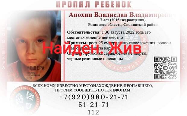 Местонахождение мальчика было неизвестно с 30 августа. Ребёнка нашли волонтёры в этот же день. Подробности поисков не раскрываются.