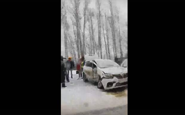 По сообщениям очевидцев, на заснеженной дороге в ДТП попали белая Renault и тёмная Kia. Видео с места опубликовали пользователи группы «Дороги Рязани».