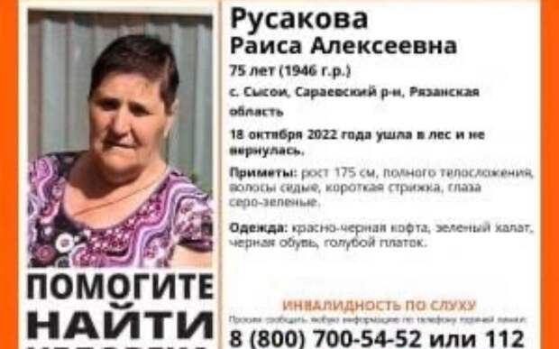 Местонахождение пожилой женщины неизвестно с 18 октября.