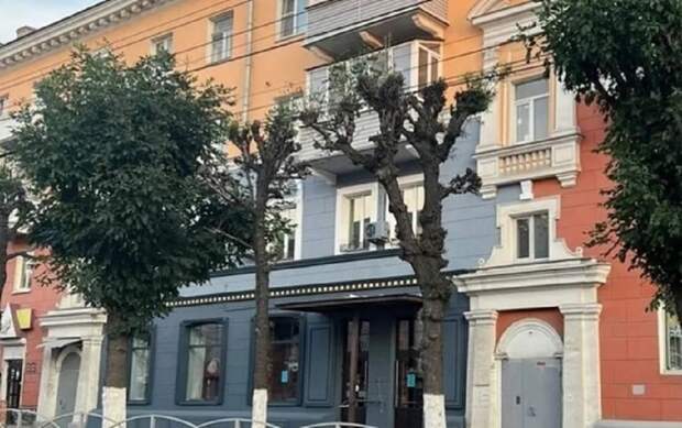 Основная часть фасада дома №35 на Первомайском проспекте окрашена в горчичные и терракотовые тона, но один из собственников перекрасил внешние стены в серый цвет. Уточняется, что госинспекция по охране объектов культурного наследия региона выявила нарушения в этих действиях собственника. Правила благоустройства предписывают проведение таких работ с использованием красок установленных оттенков.