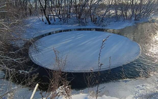 Это природное явление достаточно редкое. Оно подразумевает вращающиеся ледяные круги на воде. В основном круги появляются в реках с медленным течением. В среднем они имеют диаметр от 5 до 10 метров.