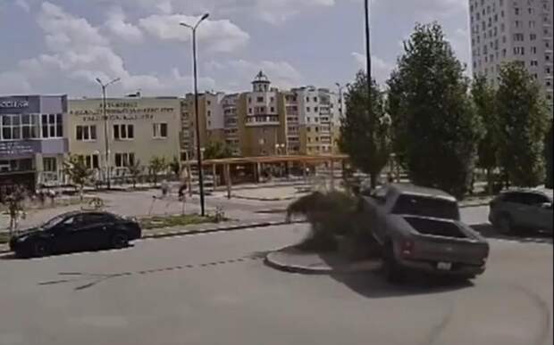 Инцидент произошёл во вторник, 4 июля. Судя по кадрам, пикап не смог аккуратно развернуться и врезался в ёлку в жилом комплексе.