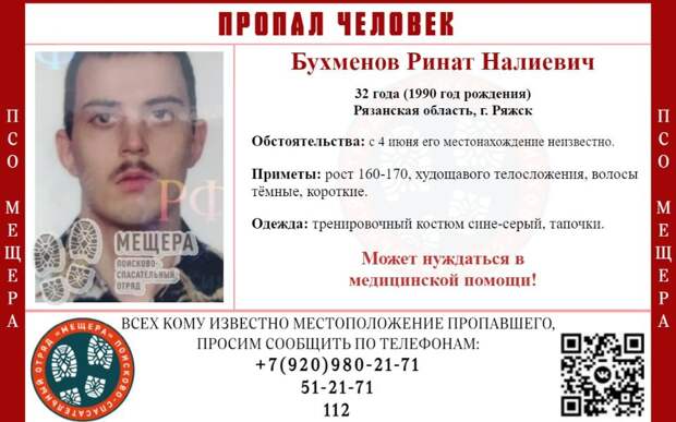 О местонахождении пропавшего просят сообщать по телефонам +7(920)980-21-71, 51-21-71 или 112.