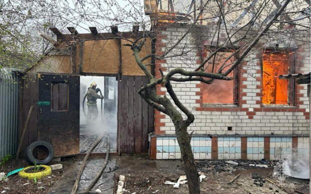 По предварительным данным, повреждено два дома на площади около 200 квадратных метров. Пострадавших нет.