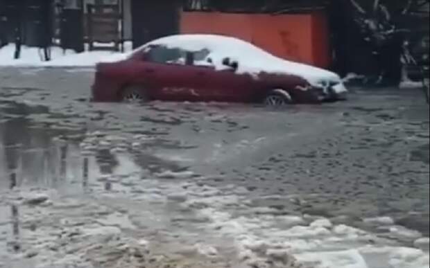 В интернете опубликовали видео, снятое на Окской улице. На кадрах видно, что дорога превратилась одну глубокую лужу. После недавних дождей и снегопадов талая вода затопила практически всю улицу.