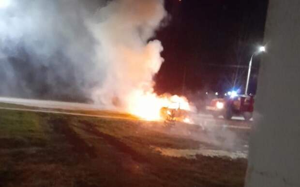 Сообщение о возгорании поступило в 03:09 в четверг, 13 апреля. Горела машина, стоявшая на обочине. Автомобиль выгорел полностью.
