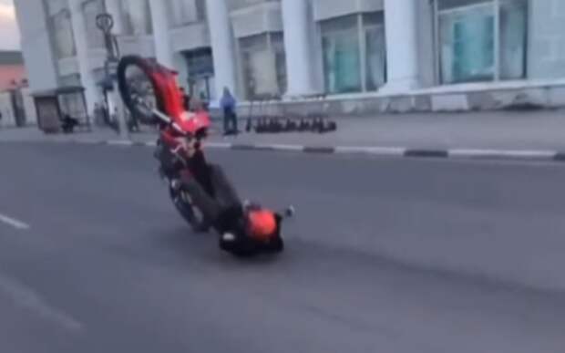 Судя по кадрам, водитель байка не удержал равновесие и упал назад. О состоянии мотоциклиста ничего неизвестно.