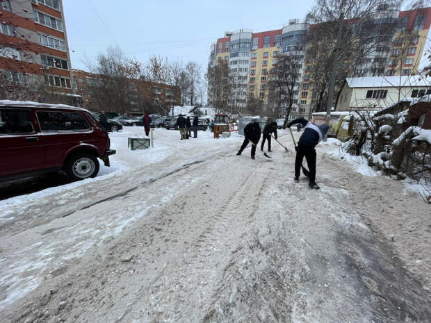За полтора часа группа расчистила двор на улице Вокзальной, 85 и Коммунистический переулок.