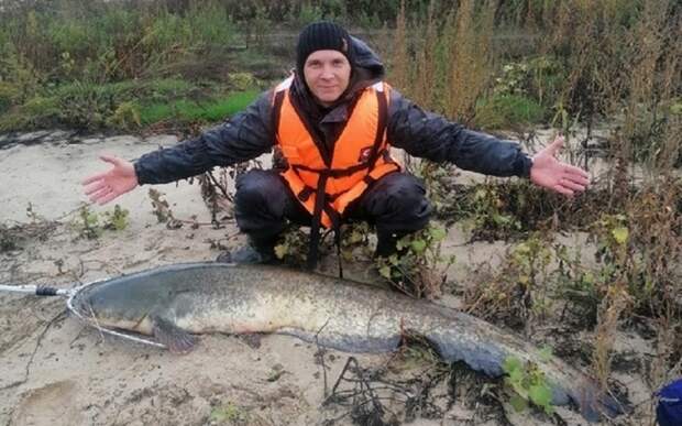 Фотографией рыбы любитель ловли похвастался в социальной сети. По словам рыбака, ему помогла вытащить сома жена.