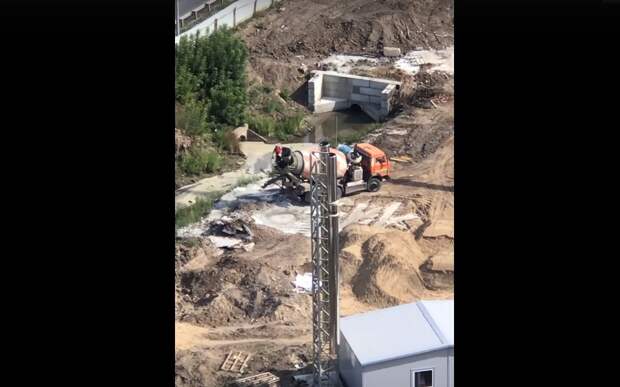 По словам автора ролика, раствор сливают на строительной площадке рядом с ЖК «Маргелов» 2 сентября.