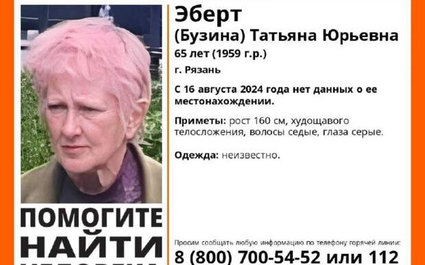 Приметы: рост 160 см, телосложение худощавое, волосы седые, глаза серые. Во что была одета неизвестно.